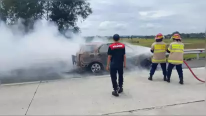 Nganjuk, tvOnenews.com - Sebuah minibus ludes terbakar di jalan tol Madiun - Surabaya, tepatnya di ruas tol KM 662, Kertosono, Nganjuk pada Sabtu (28/03). Insiden ini diduga akibat korsleting listrik pada kendaraan.