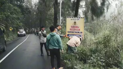 Polres Malang Pasang Puluhan Papan Imbauan dan Cermin Cembung di Jalur Wisata Bromo