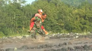Kisah Serma Wahyu, 3 Tahun Gendong Anak-anak Sebrangi Lahar Gunung Semeru agar Bisa Sekolah