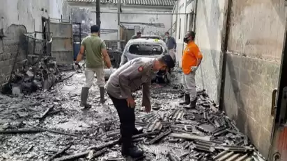 Dalam sekejap api membesar dan melalap seisi garasi rumah.Tiga unit mobil dan empat sepeda motor milik korban yang berada di garasi ikut hangus terbakar.