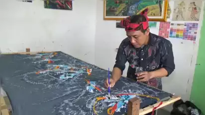 Batu, Jawa Timur - Berawal dari keprihatinan tentang seni lukis yang semakin ditinggalkan oleh generasi muda, Fatkhul Muin seorang seniman lukis dari Desa Sumberejo, Kecamatan Batu, Kota Batu, berinisiatif membuat kreasi batik tulis tiga dimensi. Selain batik tulis tiga dimensi, Fatkhul Muin juga membatik beragam motif seperti batik motif hewan dan bunga.