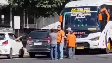 Tulungagung, tvOnenews.com — Viral di media sosial video aksi penghadangan bus ugal-ugalan di Tulungagung, bahkan nyaris terjadi perkelahian antara kru bus dengan pengemudi mobil yang menghadang.
