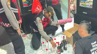 Dalam razia tersebut polisi menyita belasan botol miras berbagai merek dari tangan AY. Kegiatan ini merupakan bagian dari upaya menjaga ketertiban dan keamanan masyarakat saat perayaan Hari Raya Waisak. (msn/ias)