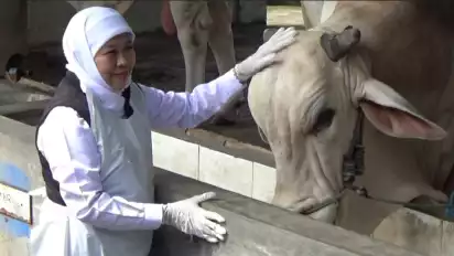 Ngawi, tvOnenews.com - Menjelang hari raya Idul Adha 1446 H, Gubernur Jawa Timur Khofifah Indar Parawansa memastikan hewan kurban di Jawa Timur bebas dari indikasi Penyakit Mulut dan Kuku (PMK) dan Antraks.