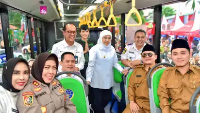 "Hari ini kita bersama-sama hadir menyaksikan pembukaan Trans Jatim Koridor VI yang menghubungkan Terminal Kertajaya Kabupaten Mojokerto sampai Terminal Porong Kabupaten Sidoarjo," ujar Khofifah.
