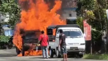 Pacitan, tvOnenews.com - Sebuah mobil jenis Pick Up Suzuki Carry Futura tahun 2004 dengan nomor polisi AD 8590 HG mengalami kebakaran di Jalan Raya Pacitan-Solo, tepatnya di depan Sub Terminal Punung, pada Rabu sekitar pukul 09.30 WIB.