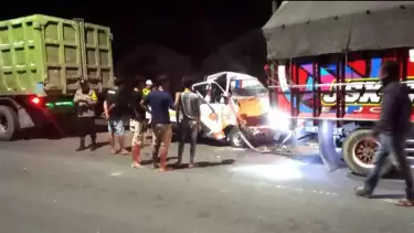Gresik, Jawa Timur - Kecelakaan maut yang melibatkan mobil pick up dengan dump truk terjadi di jalur Pantura Deandles Manyar Gresik. Akibatnya sepasang suami istri (Pasutri) asal Desa Karangrejo Gresik tewas dilokasi kejadian usai mobil Daihatsu Pick Up Nopol L 9304 CO yang dikendarainya dihantam Dump truk dari arah berlawanan, di raya pantura tepatnya di Desa Banyutami, Kecamatan Manyar, Senin (28/3/2022).