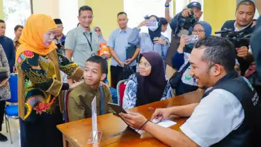 surabaya, tvOnenews.com - Gubernur Jawa Timur Khofifah Indar Parawansa meninjau Posko Sistem Peneriman Murid Baru (SPMB) Tahun 2025 Pemprov Jatim di Kantor UPT Teknologi, Informasi dan Komunikasi Dinas Pendidikan Prov. Jatim, Jalan Jagir Surabaya, Jumat (30/5).