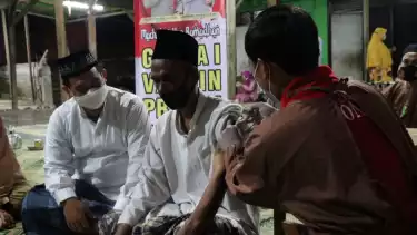 Gresik, Jawa Timur - Pemberlakuan aturan vaksin booster menjadi salah satu syarat mudik lebaran, membuat masyakarat di Kabupaten Gresik semakin antusias untuk mendapatkan vaksinasi Covid- 19 tahap ke-3 atau Booster. Bahkan akibat tingginya animo masyarakat, petugas Vaksinator menggelar vaksinasi usai pelaksanaan sholat tarawih hingga larut malam.