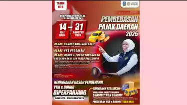 Surabaya, tvOnenews.com - Pemerintah Provinsi Jawa Timur kembali menggelar pemutihan pajak kendaraan bermotor. Tradisi tiap tahun yang sudah memasuki tahun keenam ini dilaksanakan untuk meringankan beban masyarakat Jatim. Kali ini juga dilaksanakan dalam rangka menyambut Hari Ulang Tahun ke-80 Kemerdekaan Republik Indonesia tahun 2025.