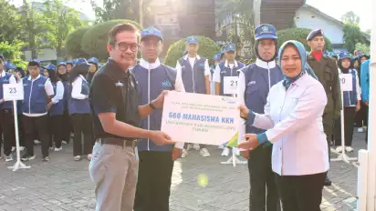 Tuban, tvOnenews.com - Â Sebagai salah satu wujud implementasi Tridarma Perguruan Tinggi, Universitas PGRI Ronggolawe secara resmi memberangkatkan mahasiswa untuk melaksanakan KKN di Kabupaten Rembang dan Tuban. Pemberangkatan 660 Mahasiswa KKN tersebut dilepas secara langsung oleh Rektor, Senin (21/7/2025).