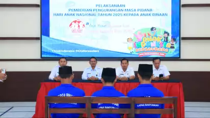 Banyuwangi, tvOnenews.com – Hari Anak Nasional (HAN) 2025 kali ini, tiga anak binaan di Lembaga Pemasyarakatan (Lapas) Kelas IIA Banyuwangi menerima pengurangan masa pidana dari Kementerian Imigrasi dan Pemasyarakatan melalui Direktorat Jenderal Pemasyarakatan.