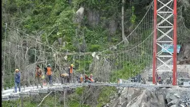 Lebih lanjut, Tubagus menjelaskan setelah pemasangan landasan selesai, selanjutnya akan dilakukan pengerjaan vertical briefe di samping kanan dan kiri. Jembatan gantung darurat ini mencapai panjang 120 meter dan lebar 180 cm. Sesuai target, jembatan ini diperkirakan akan selesai pada 20 April 2022 mendatang.