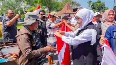 Sampang, tvOnenews.com - Gubernur Jawa Timur Khofifah Indar Parawansa menyerukan kepada seluruh masyarakat Jatim untuk mengibarkan Bendera Merah Putih secara serentak selama satu bulan penuh hingga 31 Agustus 2025 mendatang. Hal itu ditekankannya dalam rangka memperingati dan memeriahkan Hari Ulang Tahun ke-80 Kemerdekaan Republik Indonesia.