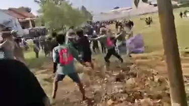 Gresik, tvOnenews.com - Sebuah video yang memperlihatkan aksi tawuran sejumlah pemuda saat mengikuti kegiatan gerak jalan agustusan Wadeng-Sidayu, di Desa Golokan, Kecamatan Sidayu, Kabupaten Gresik viral. Video detik-detik kericuhan itu beredar luas di media sosial (medsos).
