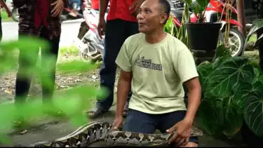 Ular Sanca Kembang Berukuran Jumbo, Menarik Perhatian Warga