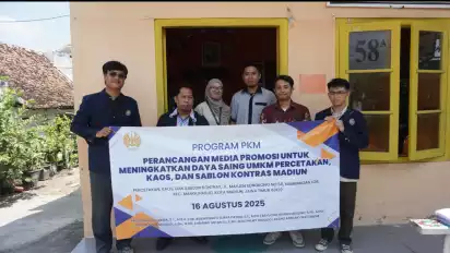 Madiun, tvOnenews.com – Tim dosen Desain Grafis Universitas Negeri Surabaya (Unesa) melaksanakan kegiatan Pengabdian kepada Masyarakat (PkM) di UMKM Percetakan, Kaus dan Sablon Kontras Madiun. Program bertema “Perancangan Media Promosi untuk Meningkatkan Daya Saing UMKM Percetakan, Kaos, dan Sablon Kontras Madiun” ini menjadi upaya nyata mendukung SDGs poin delapan yaitu Pekerjaan Layak dan Pertumbuhan Ekonomi.