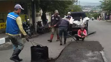 Setidaknya ada 50 lubang jalan, baik itu jalan kewenangan Provinsi maupun Pemerintah Kota Batu, dilakukan tambal sulam.