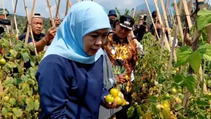Bukan tanpa sebab, Khofifah mengaku Jawa Timur terjadi deflasi dan tersebar di 14 kota dan kabupaten akibat kelebihan pasokan tomat dari para petani.