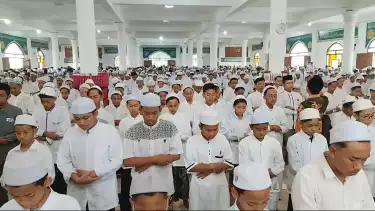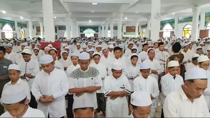 Surabaya, tvOnenews.com - Usai menunaikan salat Jumat, ribuan santri Pondok Pesantren Amanatul Ummah, Pacet, Mojokerto, menggelar salat ghaib dan tahlil untuk para santri yang menjadi korban ambruknya bangunan di Ponpes Al Khoziny Buduran, Sidoarjo.