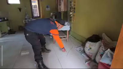 “Awalnya hujan sejak pagi, pas malam saya dengar suara brak gitu, pas tak lihat lantai dapur retak sampai tembok,” kata Warsini