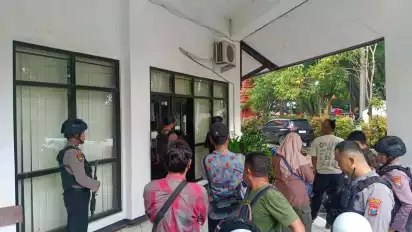 Sementara itu sejumlah anggota polisi dari Polres Ponorogo nampak berjaga dengan senjata lengkap di Kantor Disbudparpora selama penggeledahan dan pemeriksaan berlangsung. (asn/far)