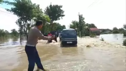 "Tepatnya di jalan raya Jrengik atau masuk Desa Taman, terjadi lupain air sungai Penyepen ke sampai ke jalan raya. Warga yang hendak melaju ke arah Sampang mau sebaliknya hendak berhati - hati karena ketinggian air mencapai tiga puluh sentimeter," kata AKP. Eko Puji Waluyo, PLH. Kasi Humas Polres Sampang.