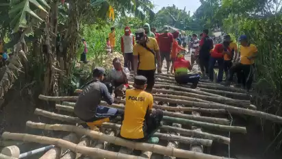 Jembatan Ambruk, Polisi, Warga dan Ormas Bangun Jembatan Darurat