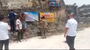 Buntut Tewasnya 6 Santri, Petugas Gabungan Pasang Banner Larangan Aktivitas Galian C di Bukit Jaddih, Bangkalan