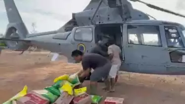 Pengiriman bantuan dilakukan oleh Helikopter AS565 MBe Panther HS-1307 yang diawaki Pilot Lettu Laut (P) Dwi Kurniawan dan Copilot Letda Laut (P) Hashfito, bersama seluruh crew yang bertugas.