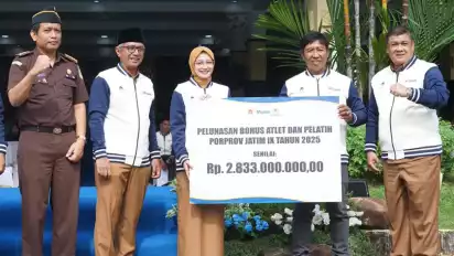 Selain pendistribusian bantuan langsung tunai Wali Kota Kediri Vinanda juga menyerahkan SK Kenaikan Pangkat ASN, dan penyeragan pelunasan bonus atlet, pelatih diajang Poprov Jatim 2025 senilai 2.833.000.000.00