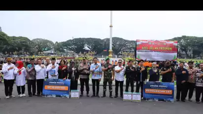 Kota Malang, tvOnenews.com - Apel Gelar Pasukan Operasi Lilin Semeru 2025 dilaksanakan di halaman Balai Kota Malang, Jumat (19/12) untuk memastikan kesiapan personel, sarana, dan prasarana pengamanan Natal 2025 dan Tahun Baru 2026 (Nataru).