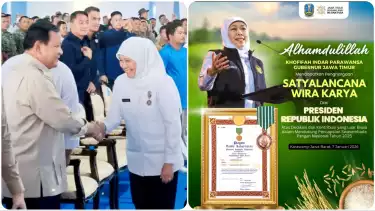 Tanda kehormatan Satyalancana Wira Karya ini diberikan pada Gubernur Khofifah atas dedikasi dan kontribusi luar biasa dalam mendukung pencapaian Swasembada Pangan Nasional sepanjang Tahun 2025.