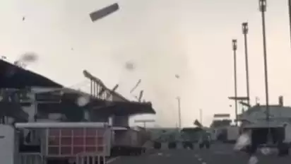 Sidoarjo, tvOnenews.com - Puting beliung menerjang kawasan parkiran Terminal 1 Bandara Internasional Juanda pada Kamis sore, 8 Januari 2026. Peristiwa tersebut menyebabkan kerusakan parah di area parkir.