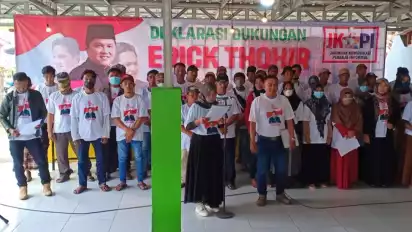 Gresik, Jawa Timur- Jaringan Komunikasi Pekerja Informal (JKPI) di Kabupaten Gresik menggelar deklarasi dukungan kepada Menteri BUMN Erick Thohir untuk maju menjadi calon Presiden pada Pilpres 2024 mendatang. Erick Thohir dianggap menjadi sosok calon pemimpin muda yang jujur, energik dan berakhlak baik.