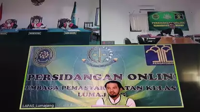 Lumajang, Jawa Timur - Sidang kasus penendangan sesajen di lokasi bencana erupsi Gunung Semeru yang videonya viral pada awal bulan Januari silam, kini memasuki babak akhir. Hari ini, Selasa (31/5/2022) terdakwa Hadfana Firdaus, kembali mengikuti persidangan yang digelar secara online dari Lembaga Pemasyarakatan Kelas II B di Jalan Alun-alun Timur Lumajang.