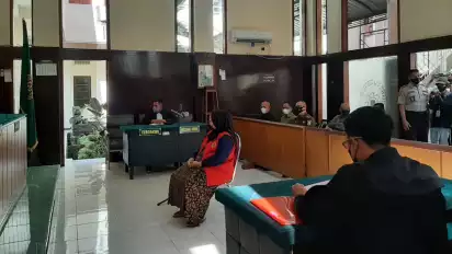 Lumajang, Jawa Timur - Nesi atau yang lebih dikenal dengan Mami Ambar, tertunduk lemas saat Jaksa Penuntut Umum (JPU) membacakan tuntutan pidana untuknya , Selasa (7/6).