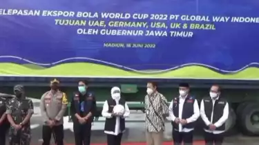 "Ternyata bola yang akan digunakan dalam FIFA World Cup tahun 2022 di Qatar adalah dari Madiun, dan saat ini yang dikirim antara lain untuk United Kingdom (UK). Kita bahagia dan bangga bola yang digunakan di ajang dunia itu di-support dari Madiun Jawa Timur," ujar Gubernur Khofifah saat pelepasan ekspor bola di Madiun, Kamis (16/6/2022).