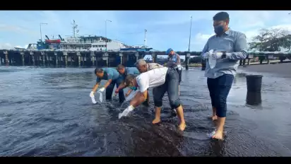 “Kami lepasliarkan di belakang Mako Lanal, ini masuk perairan Selat Bali yang ramah dengan ekosistem laut,” jelas Mayor Hari.