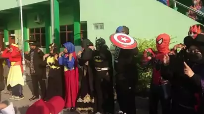 "Para guru membuat kostum superhero diantaranya Super Women, Spiderman, Joker, Batman, Cat Women dan Thor untuk memberi kesan jika sekolah itu menyenangkan dan tidak menakutkan," ujar Kepala Sekolah SD NU Nurul Ishlah Imamatul Farikhah.