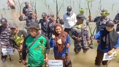 "Hari ini penanaman pohon mangrove serentak dilaksanakan di 77 lokasi di seluruh jajaran angkatan laut dalam rangka memperingati Hari Mangrove Sedunia. Kita kenapa-kenapa konsentrasi penanaman mangrove, karena mangrove ini masa depan kita," kata Letkol Laut, Mahfud Efendi, Danlanal Batuboron Bangkalan, Selasa (26 /7).