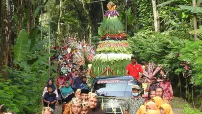 "Puncaknya hari ini, selain tradisi Ruwat Air di sumber mata air juga rebutan gunungan hasil bumi dan makan bersama," tambahnya.