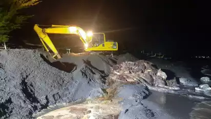 Apalagi, lokasi terdamparnya paus sulit dilalui kendaraan pembawa alat berat. Sehingga, menyulitkan petugas mendatangkan alat untuk melakukan evakuasi.