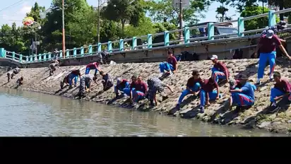 5000 Prajurit TNI AL Bersihkan Bantaran Sungai Kalimas, Surabaya, Sambut HUT RI ke 77
