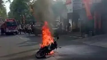 "Untung lokasinya tadi dekat jadi bisa segera kita tangani, korban jiwa tidak ada, hanya kerugian materil karena sepeda motornya habis terbakar," jelas Bayu.