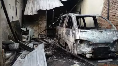 Api tidak hanya menghanguskan garasi dan dapur rumah, tapi juga dua kendaraan dan dua peralatan rumah tangga seperti mesin cuci dan freezer.