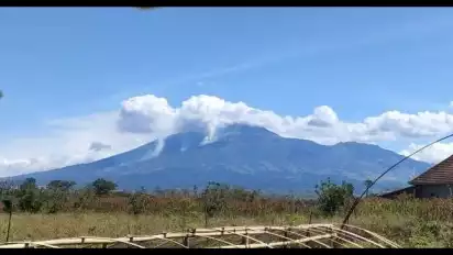 Banyuwangi, Jawa Timur - Asap tebal muncul dari lereng Gunung Merapi Ungup-ungup, Banyuwangi. Diduga, lereng gunung di barat laut Banyuwangi ini terbakar. Sedikitnya, tiga titik asap membumbung tinggi dari lereng gunung di dekat puncak Ijen tersebut.