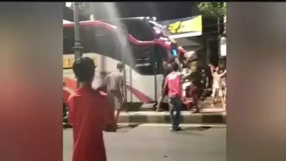 Puluhan warga di Desa Mejayan Kecamatan Mejayan Kabupaten Madiun, Kamis (1/9/2022) malam sekitar pukul 21.00 WIB beramai-ramai menghadang dan rusak Bus Mira.