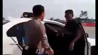 Protes bapak-bapak itu tidak digubris oleh polisi. Saat hendak menghidupkan mesin dan berjalan. Teman bapak-bapak yang merekam video itu berucap polisi atas nama Fahruddin. Polisi itu pun kembali berhenti dan tidak keluar dari mobilnya.