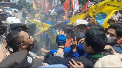 Aksi Unjuk Rasa Ratusan Mahasiswa Tolak Kenaikan Harga BBM di Kota Mojokerto, Ricuh